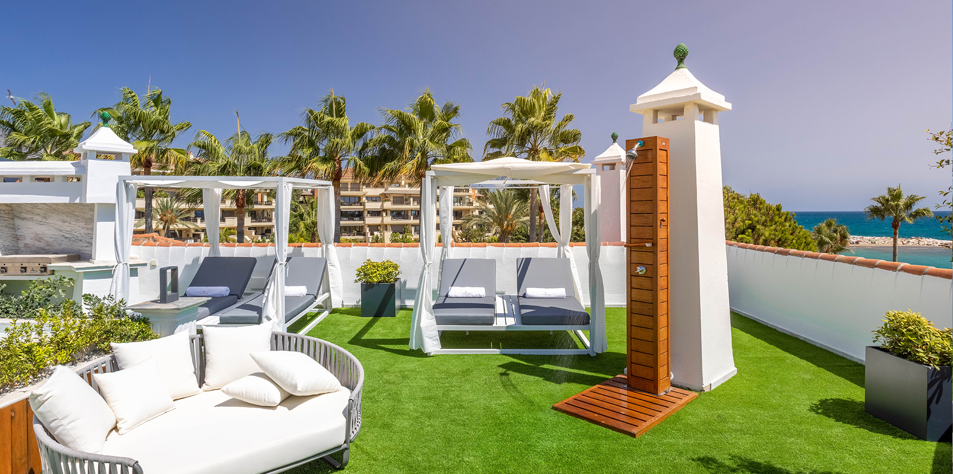 The Villa’s enclosed secure private compound has a raised seafront terrace with
